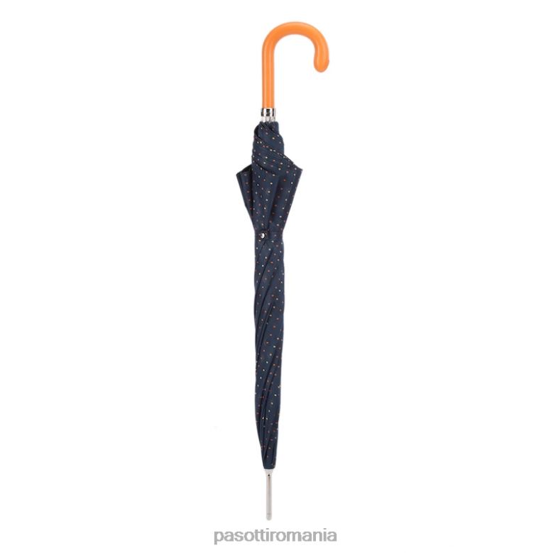 umbrelă cu imprimeu cravată cu mâner din piele portocalie