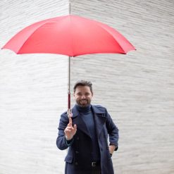 umbrelă roșie cu câine argintiu