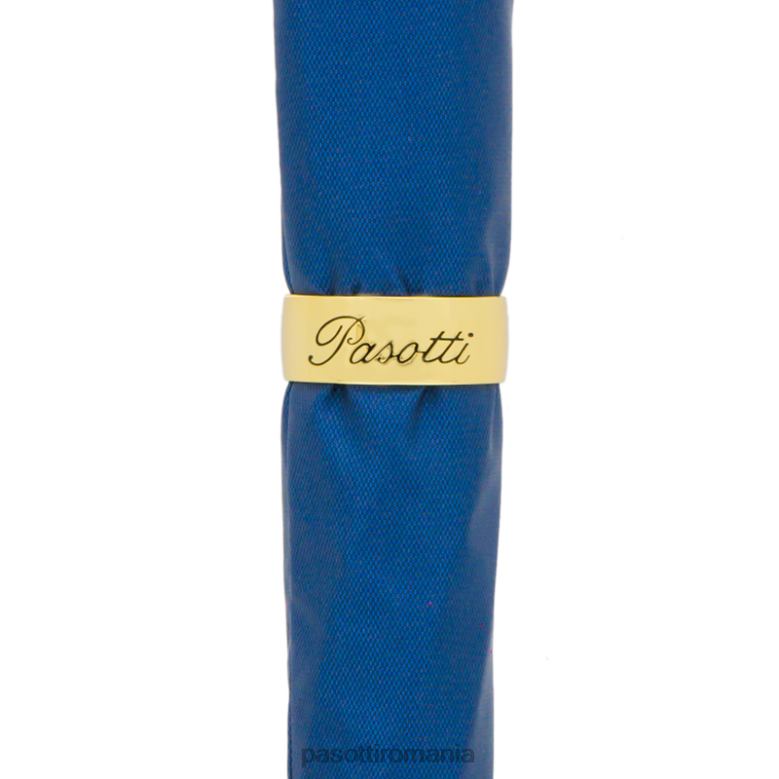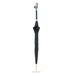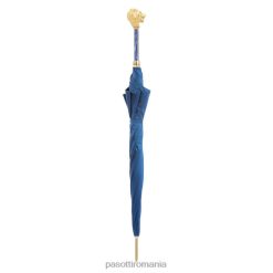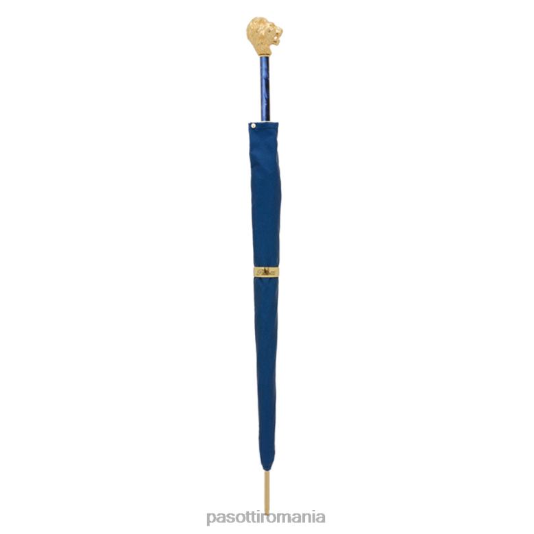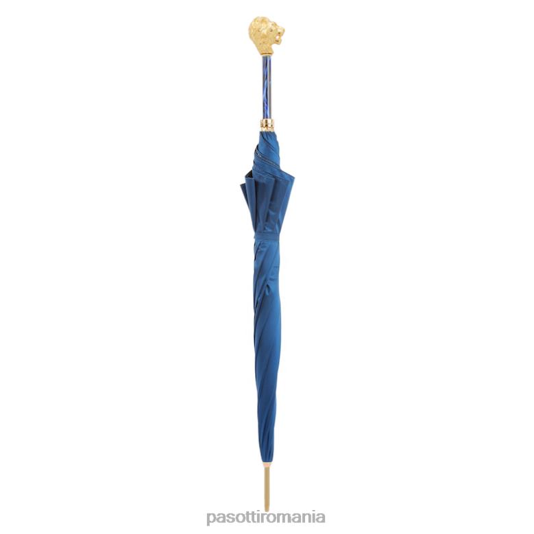umbrelă albastră cu mâner leu auriu, cu carcasă și inel
