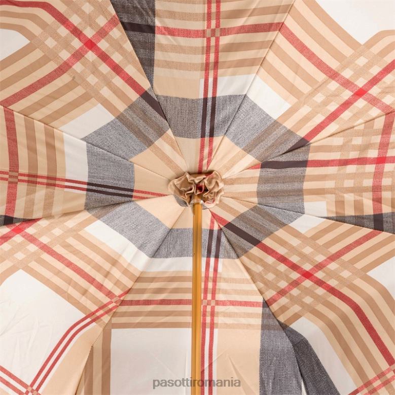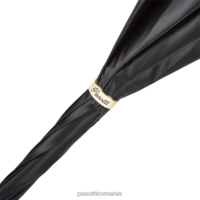 femei PASOTTI 189 52864-111 p – umbrelă neagră căptușită cu tartan cu mâner din piele, pânză dublă 84BXH461