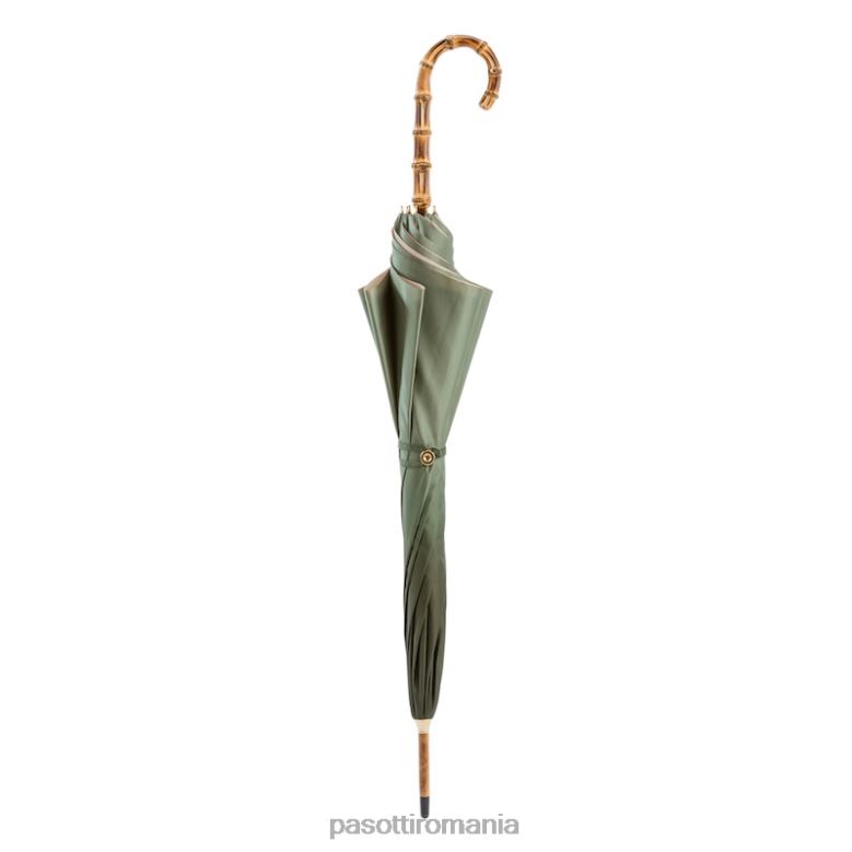 umbrelă verde cu interior minunat și mâner din bambus, pânză dublă