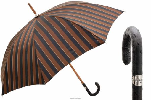 bărbați PASOTTI 142 conrad-8 s – umbrelă mare cu dungi cu mâner din piele de struț 84BXH143