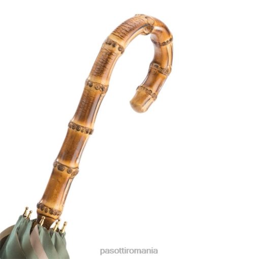 umbrelă verde cu interior minunat și mâner din bambus, pânză dublă